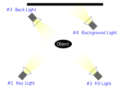 Típico esquema de iluminación a cuatro puntos.