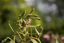 Después de la floración entre junio y octubre, la planta forma las vainas de semillas 2 a 3 cm de largo y 8 mm de ancho que explotan cuando se les molesta, esparciendo las semillas hasta 7 metros de distancia.