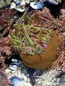 Vive en la superficie de sustratos duros y blandos, a profundidades desde 5 a 11 m aunque pueden llegar a encontrarse a más de 50 m de la superficie del mar.[6] Se encuentra habitualmente asociada con las anémonas marinas.[4]