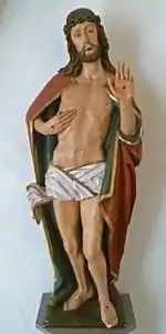 Rubens, tríptico Rockox. En este caso, la llaga es casi inperceptible y se encuentra en el costado erróneo.[15] Retratos de los donantes en los laterales.