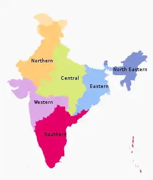 Sin embbargo, el Servicio Geológico de la India (parte del Ministerio de Minas ) incluye a Uttar Pradesh y Delhi en su Región Norte, pero excluye a Rayastán y Chandigarh, con sede regional en Lucknow.