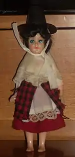 Se conocen unas ochenta muñecas del siglo XIX vestidas con un traje galés. Muchas tienen telas genuinas de trajes galeses, que pueden ser las telas más antiguas de su tipo que hayan sobrevivido. Casi todas las mujeres de la familia real desde la visita de la princesa (más tarde reina) Victoria en 1832 recibieron una muñeca vestida con un traje galés cuando visitaron Gales. Esto demuestra que incluso en esta temprana fecha, el traje galés se consideraba algo especial, y se comercializaba junto con estampados de los trajes.