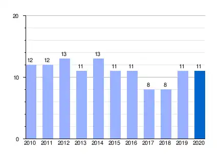 | Gráfica de evolución demográfica de Infantas entre 2010 y 2020 |