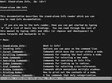 info es un software que permite consultar ayuda y documentación en formato hipertexto multipágina. Funciona en línea de comandos, sin necesidad de GUI.