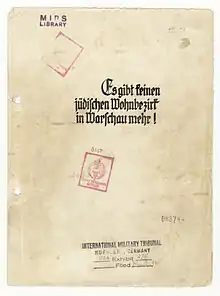 - Jürgen Stroop, "Es gibt keinen jüdischen Wohnbezirk in Warschau mehr!", Warschau 1943.