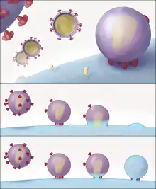 - La penetración de la membrana celular por parte de la gp41, que se aproxima a la membrana del VIH y a la célula T, y promueve su fusión
