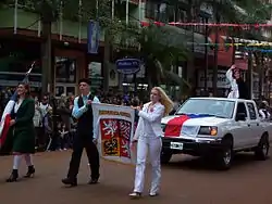 ![]() La colectividad checa de Oberá (Misiones) durante el desfile inaugural de la XXVI Fiesta Nacional del Inmigrante. | ||