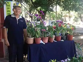 ![]() Taiwanés ofertando orquídeas en la ciudad de Itauguá. | ||