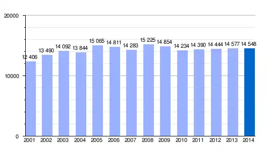 | Gráfica de evolución demográfica de Inmigración francesa en Argentina entre 2001 y 2014 |