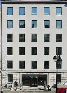 El Institute of Physics (IOP) es una sociedad científica no lucrativa, del Reino Unido, dedicada a incrementar la práctica, entendimiento y aplicación de la física.[2] Tiene cerca de 50 000 miembros alrededor del mundo.[3] El IOP respalda la física en la educación, investigación e industria.[4] Además de esto, el IOP otorga a sus miembros servicios que incluyen asesoría acerca de carreras y desarrollo profesional, así como la evaluación profesional en el Reino Unido de físicos e ingenieros.[5] La compañía editorial del IOP, la IOP Publishing, publica más de 60 títulos de revistas académicas.[6]