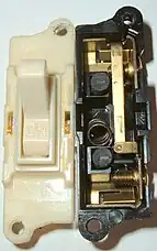 Un interruptor eléctrico (también suiche,[1] suich[2] o switch)[3] es un dispositivo que permite desviar o interrumpir el curso de una corriente eléctrica. En el mundo moderno sus tipos y aplicaciones son innumerables, desde un simple interruptor que apaga o enciende una bombilla, hasta un complicado selector de transferencia automático de múltiples capas, controlado por computadora.