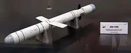 Modelo en exposición de un misil 3M-14 como los utilizados por Rusia en la guerra civil siria