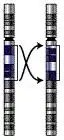 - Intercambio de secuencias génicas. Ocurre si dos genes (A y B) se localizan en cada punto de ruptura de la inversión y se extienden fuera de ella, de modo que cuando se de la inversión la parte final del gen A sustituirá la parte inicial del gen B contenida en la inversión y viceversa (la parte inicial del gen B sustituirá la parte final del gen A).
