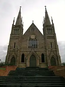 El Padre William McGinty, originario de Irlanda del Norte, se hizo cargo de la Parroquia Católica de Ipswich en 1852 e hizo construir la primera iglesia de Santa María. Este edificio fue descrito como un "tosco edificio de losa de pequeñas dimensiones, sin ventanas de vidrio, solo postigos". Esta iglesia fue demolida más adelante y reemplazada por un "hermoso edificio de piedra de diseño gótico" según indicó un miembro de la comunidad. La antigua iglesia de Santa María costó £7.000 in 1862.