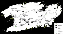 Mapa de la isla de Vis, donde se aprecia la situación de las ruinas de Isa junto a la ciudad actual de Vis.