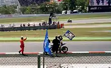 ![]() Isaac Viñales recogiendo la bandera de su club de fanes en Montmeló (2014) | ||