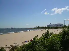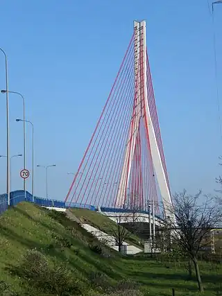 Wisłoujście, una fortaleza del siglo XVII que se utilizaba para proteger la desembocadura del puerto de Gdansk se encuentra allí. Uno de los sitios donde comenzó la Segunda Guerra Mundial, llamado Westerplatte (donde se produjo la Batalla de Westerplatte) también se encuentra allí. El puente colgante del Tercer Milenio Juan Pablo II, inaugurado en 2001, es uno de los que conecta la isla al continente.