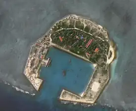 La isla está habitada solo por los soldados vietnamitas. Las estructuras incluyen un edificio de dos pisos, armas antiaéreas, artillería y una estructura que marca la "soberanía vietnamita".