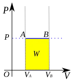 donde W es trabajo, U es energía interna y Q es calor.[1] El trabajo de presión-volumen por el sistema cerrado se define como: