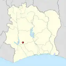 Se encuentra ubicado en el centro-oeste del país, cerca de la orilla oriental río Sassandra.