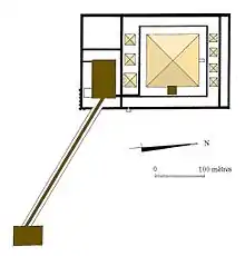 Su pirámide en el lado norte de la pirámide del rey midió originalmente unos 16,80 m en la base, y 16,80 m de alto. Estaba construida de ladrillos de adobe y cubierta con losas de caliza blanca. Delante de la pirámide había una pequeña capilla funeraria decorada con relieves. Los restos de estos relieves incluían el nombre de Itakayt. Su cámara funeraria contenía un sarcófago, un cofre canópico y dos vasos canopes.