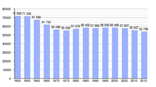 | Gráfica de evolución demográfica de Izumi entre 1950 y 2015 |