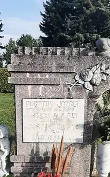 Lápida del escritor y profesor esloveno József Pusztai (nacido en Pozderec) (1864-1934) en el cementerio de Beltinci, Prekmurje (Eslovenia).