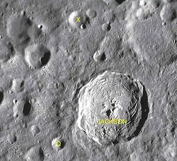 Por convención estos elementos son identificados en los mapas lunares poniendo la letra en el lado del punto medio del cráter que está más cercana a Jackson.