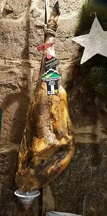 El jamón ibérico es un tipo de jamón serrano procedente del cerdo de raza ibérica, muy considerado en la gastronomía española y en la portuguesa (presunto ibérico), que se considera como un artículo de alta cocina y un manjar exquisito.
