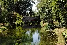 El jardín de Ninfa es un jardín en la zona de Cisterna di Latina, en la provincia de Latina, Italia central, confinando con Norma y Sermoneta. El parque tiene una superficie de 105 hectáreas (260 acres) y es un monumento natural italiano.[1] El jardín paisajístico dentro del parque comprende 8 hectáreas (20 acres) y contiene ruinas medievales, robles, cipreses y álamos, praderas cubiertas de hierba, una amplia gama de plantas exóticas de diversas partes del mundo, numerosos cursos de agua y una gran variedad de rosas trepadoras creciendo sobre los muros de piedra de las ruinas. El sitio está gestionado por la fundación italiana Fondazione Roffredo Caetani.