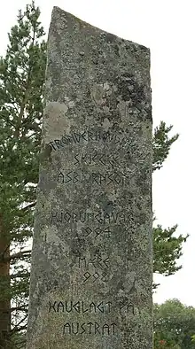 - Gudrun (n. 965), Olaf intentó compensar la muerte del caudillo Jarnskegge casándose con su hija Gudrun; durante la primera noche ella intentó asesinarle con un cuchillo, pero no lo logró y escapó.[8]
