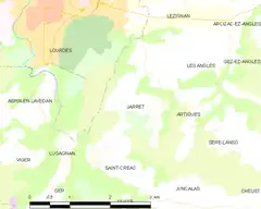 Jarret es una población y comuna francesa, en la región de Mediodía-Pirineos, departamento de Altos Pirineos, en el distrito de Argelès-Gazost y cantón de Lourdes-Est.