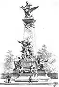 - Monumento a Léon Gambetta,[7] instalado en el cour Napoléon del Louvre (aproximadamente en la ubicación actual de la pirámide), monumento de 27 metros, tiene la estructura de un obelisco coronado por la alegoría de los derechos humanos. Inaugurado el 14 de julio de 1888, este monumento fue desplazado desde el patio Napoleón en 1954, los fragmentos del grupo central fueron reubicados en 1982 en la Square Édouard Vaillant, el parque lateral del ayuntamiento del XX Distrito de París.