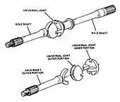 - En el tren delantero de un automóvil, estas uniones permitieron homogeneizar la velocidad del "eje delantero" (del círculo exterior) con la velocidad del "eje impulsado"[3] (del círculo interior): de hecho, las dos ruedas del eje delantero obviamente no tienen la misma velocidad en las curvas porque viajan en círculos concéntricos de la misma duración pero de diferente tamaño. El dominio de esta "homogeneización" "fue por lo tanto un progreso real[3]".