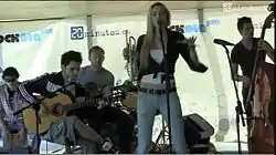![]() Jenny and the Mexicats cantando en vivo. | ||