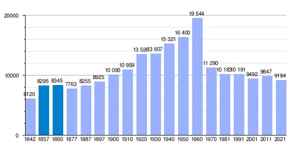 | Gráfica de evolución demográfica de Jerez de los Caballeros[1] entre 1842 y 2021 |