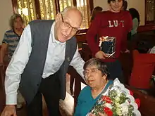 ![]() Joaquín Piña, Obispo Emérito de la Diócesis de Puerto Iguazú con la Señora "Ñata", una de las fieles de la Parroquia Itatí de Posadas. | ||