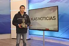 ![]() Con estatuilla del Premio México de Periodismo. | ||