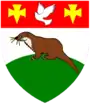 Cimera Un crucifijo de oro emergiendo de una nutria como en los escudos. |