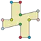 | Conway clasificó estas simetrías usando una letra y el orden de la simetría a continuación. Asignó la letra r al grupo de simetría de la figura regular; y en el caso de los subgrupos utilizó la letra d (de diagonal) para las figuras con ejes de simetría solo a través de sus vértices; p para figuras con ejes de simetría solo a través de ejes perpendiculares a sus lados; i para figuras con ejes de simetría tanto a través de vértices como a través de centros de lados; y g para aquellas figuras solo con simetría rotacional. Con a1 se etiquetan aquellas figuras con ausencia de simetría. Los tipos de simetrías más bajos permiten disponer de uno o más grados de libertad para definir distintas figuras irregulares.[38] Solo el subgrupo g12 no tiene grados de libertad, pero puede verse como un grafo dirigido | ||||||