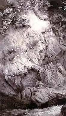 La pintura muestra a Ruskin de pie frente a una cascada en Glenfinlas, Escocia. Ruskin y Millais pasaron el verano de 1853 juntos en Glenfinlas en los Trossachs. Ruskin estaba especialmente interesado en las formaciones rocosas de la zona y emprendió sus propios estudios sobre ellas.