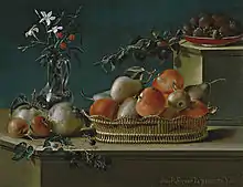 Sus floreros y bodegones, aunque arraigados en la tradición seiscentista por la disposición ordenada de sus composiciones y su técnica precisa y objetiva, se distinguen por sus fondos azulados y un acabado pulido y nacarado del color que recuerda la textura de la porcelana, como se advierte destacadamente en algunas de las citadas composiciones florales barcelonesas o en los dos pequeños bodegones del Museo del Prado, fechados en 1781.[3]