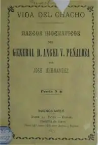 El 12 de noviembre de ese año le tocó cubrir en su medio el asesinato del general Ángel Vicente Peñaloza, cuya cabeza fue exhibida en la plaza de Olta, La Rioja. El hecho conmovió profundamente a Hernández, que lo reflejó en las editoriales de su periódico. Durante el mes del ajusticiamiento del caudillo riojano le dedicó varias editoriales, que posteriormente serían reunidos con el nombre de Vida del Chacho, o Rasgos biográficos del general D. Angel V. Peñaloza.[32] En ellos —aunque denotaba no conocer exactamente las circunstancias de la muerte del caudillo— acusaba por su muerte a los unitarios, especialmente a Sarmiento,[33] y prevenía al general Urquiza que le esperaba el mismo destino a manos de estos.[10]
