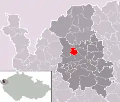 Se encuentra ubicada al norte de la región, cerca de la orilla del río Ohře —un afluente izquierdo del río Elba—, y a poca distancia al sur de la parte occidental de los montes Metálicos y de la frontera con Alemania.[1]