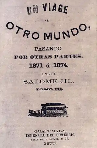- Milla y Vidaurre, José (1875). Un viaje al otro mundo, pasando por otras partes. 1871 a 1874. Guatemala: Imprenta del Comercio.
