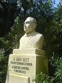 ![]() Busto de Juan Orts Román en el jardín Huerto del Cura de Elche. | ||