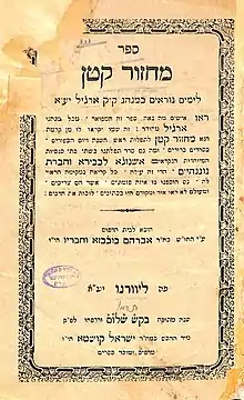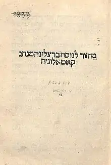 - Majzor de Rosh ha-Shaná y Yom Kippur según la costumbre de la comunidad santa Catalán antiguo y nuevo de nuestra ciudad de Salónica.