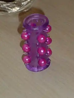 - Los anillos prolongan la erección al atrapar sangre dentro del pene. Son utilizados por hombres que tienen dificultades eréctiles o por el gusto de tener esa sensación de erección durante un tiempo prolongado. Hay modelos que incluyen un estimulador que acaricia el clítoris[cita requerida] de la mujer mientras se realiza el acto sexual, otros vibran y algunos llevan otros aros que estimulan los testículos y el perineo.