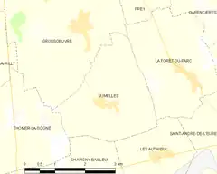 - Situación de Jumelles en un mapa de Francia y de comunas limítrofes (en francés)