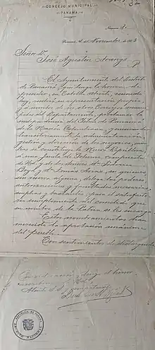 Una vez proclamada la independencia por parte del Consejo Municipal de Panamá, reunido en sesión extraordinaria en la noche del día 3 de noviembre de 1903, este convoca a un cabildo abierto para el día siguiente en la Plaza de la Catedral de la ciudad de Panamá y en la cual se lee el Acta de Independencia. Este documento fue firmado por todos los concejales y ratificado por centenares de ciudadanos asistentes al evento. La redacción del documento estuvo a cargo de Ernesto J. Goti con la colaboración de Samuel Lewis y Nicanor Villalaz.